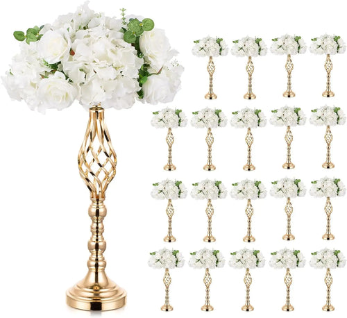 10 Pcs Metal Flower Arrangement Stand Wedding Centerpieces 20 Inch Tall Elegant Vase Gold Candelabra