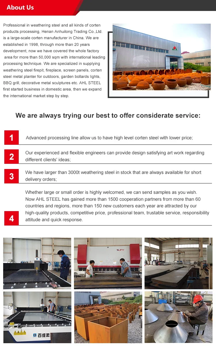 Corten or COR-TEN Steel is commonly used by JSG and is a great material that weathers rust-red like the Australian Desert. It is a fantastic material with a great variety of uses such as sculpture, capping and coping, planter boxes and as a back drop feature or a layered screening material.